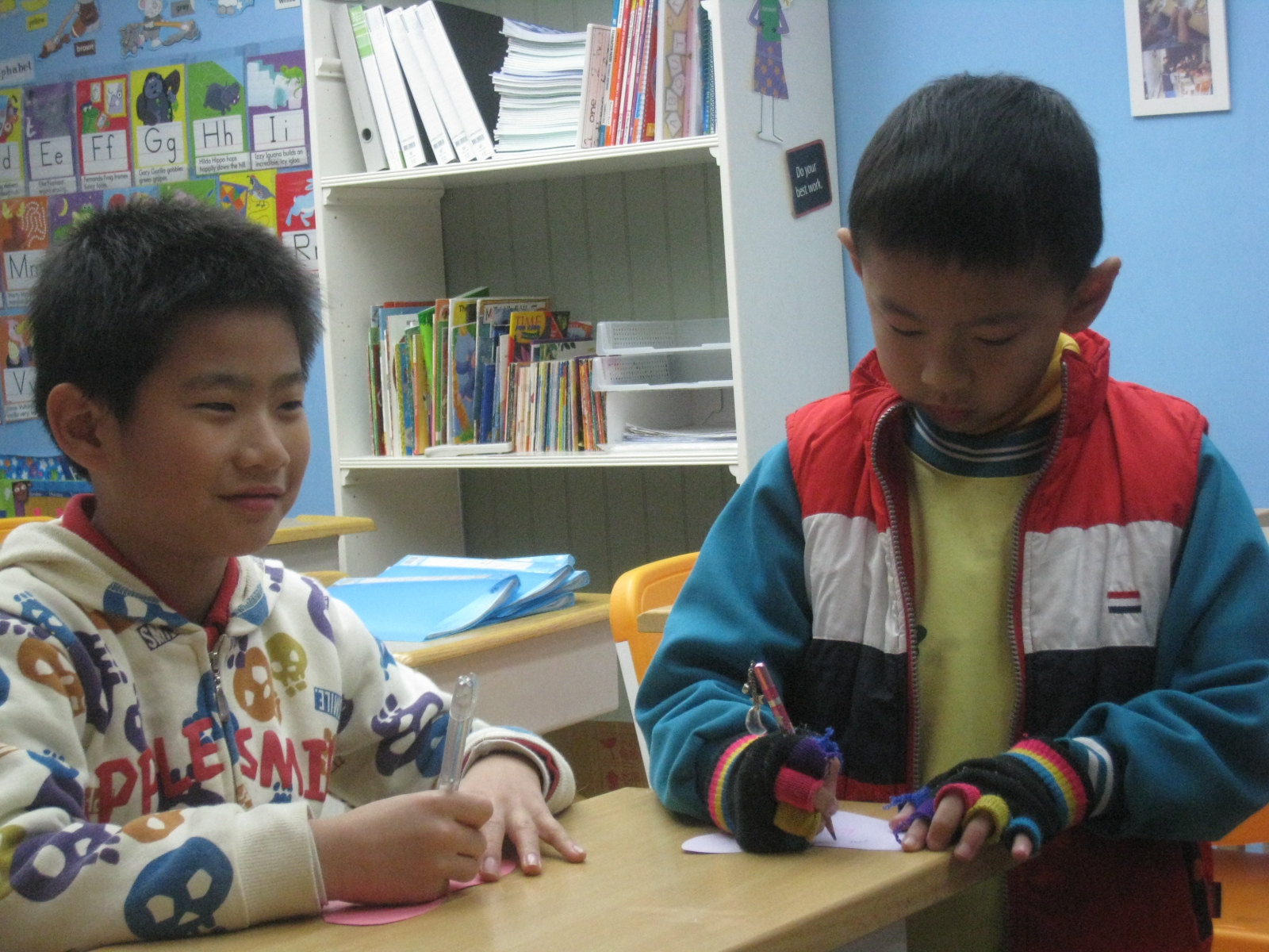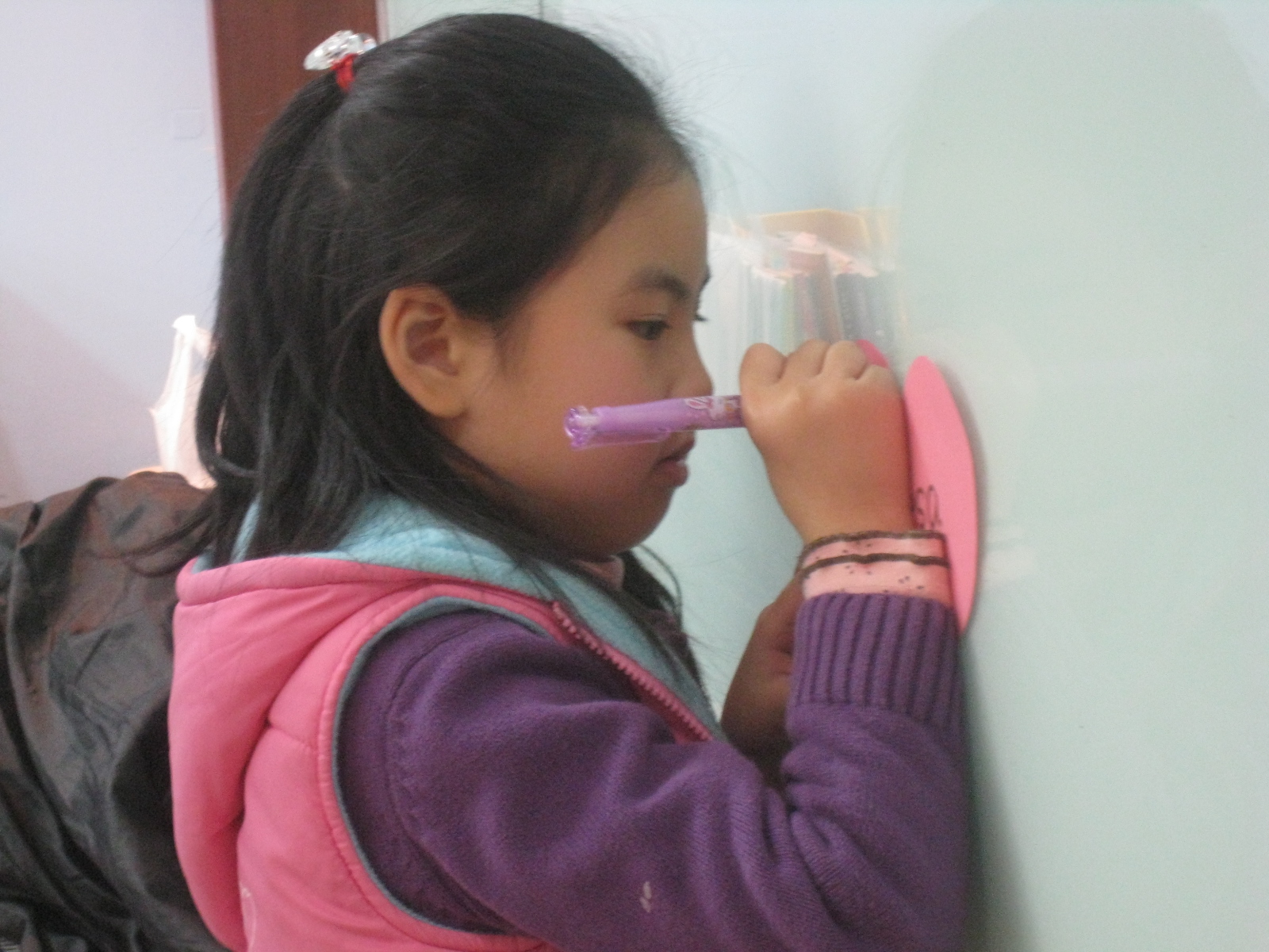 ) - (此外,我們還細心地教孩子如何讚美他人;例如給孩子一些思索的方向,讓孩子知道原來有這麼多小事情都是值得被說出來的,不見得是什麼感人肺腑或是豐功偉業的事蹟,只是一份好的感覺都值得被表達出來。更重要的是,要面帶微笑喔!因為對方聽你說話時,不只是聽你的語言,而是"感受"你的語言)