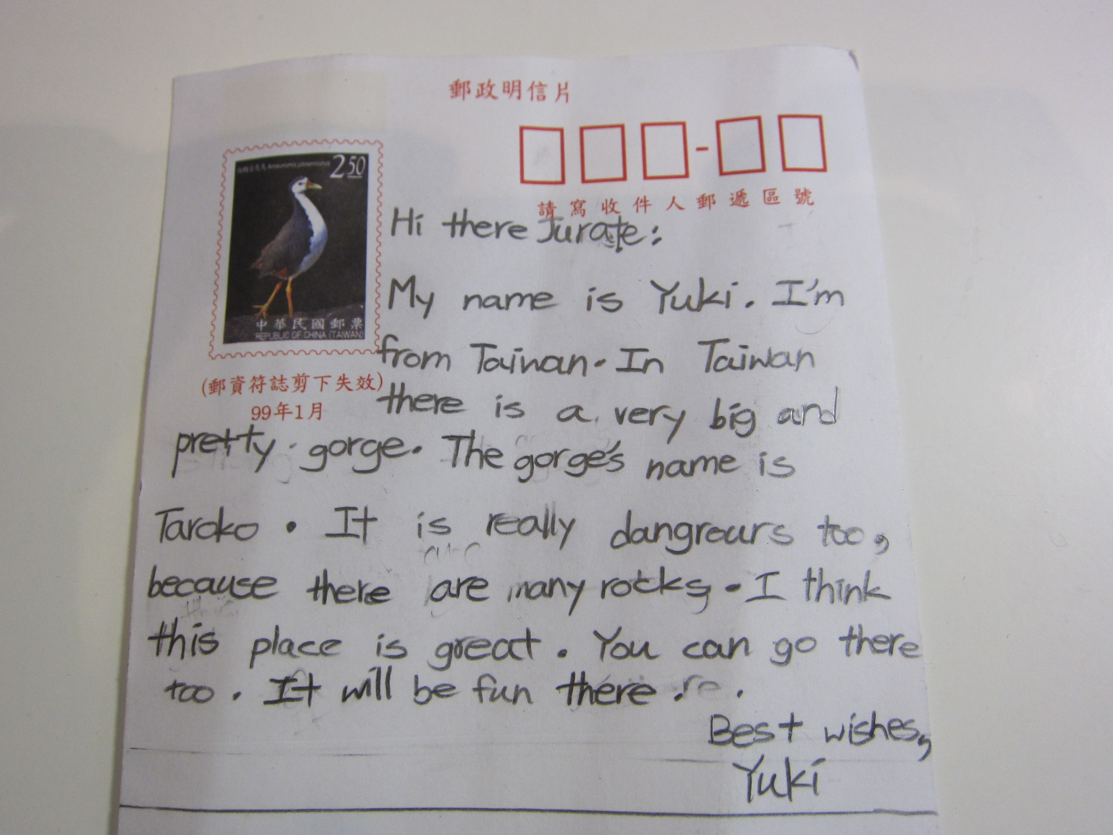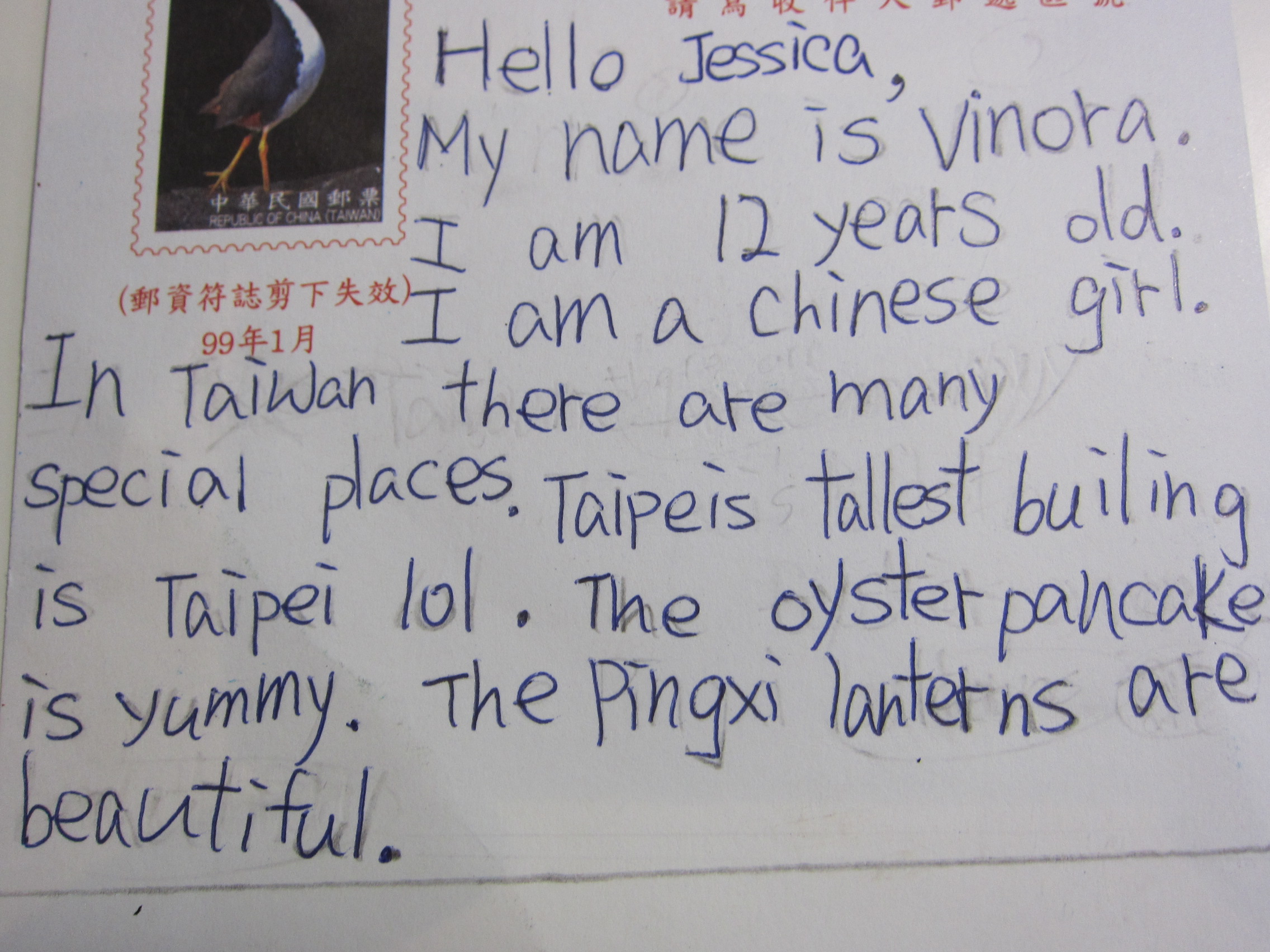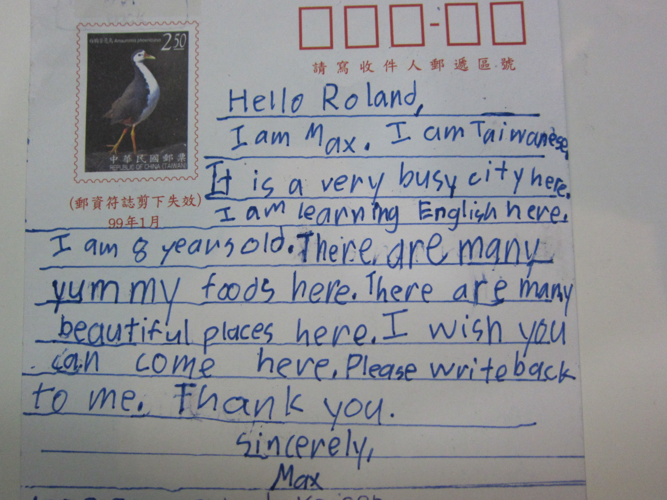 Would You Like To Be My Pen Pal? 明信片筆友 13 七月 201122 七月 2011 ~ PEI 交筆友讓孩子有目的性地愛上了寫作: 向筆友報告自己的生活 介紹台灣風土民情等等, 從國外筆友的回信裡也得到不少意外的知識 原來孩子的寫作課可以延展到無遠弗屆 分享此文: 按一下以分享至 Facebook(在新視窗中開啟) Facebook 按一下即可分享至 X(在新視窗中開啟) X 喜歡 正在載入... 相關 發表者:PEI 檢視 PEI 的所有文章