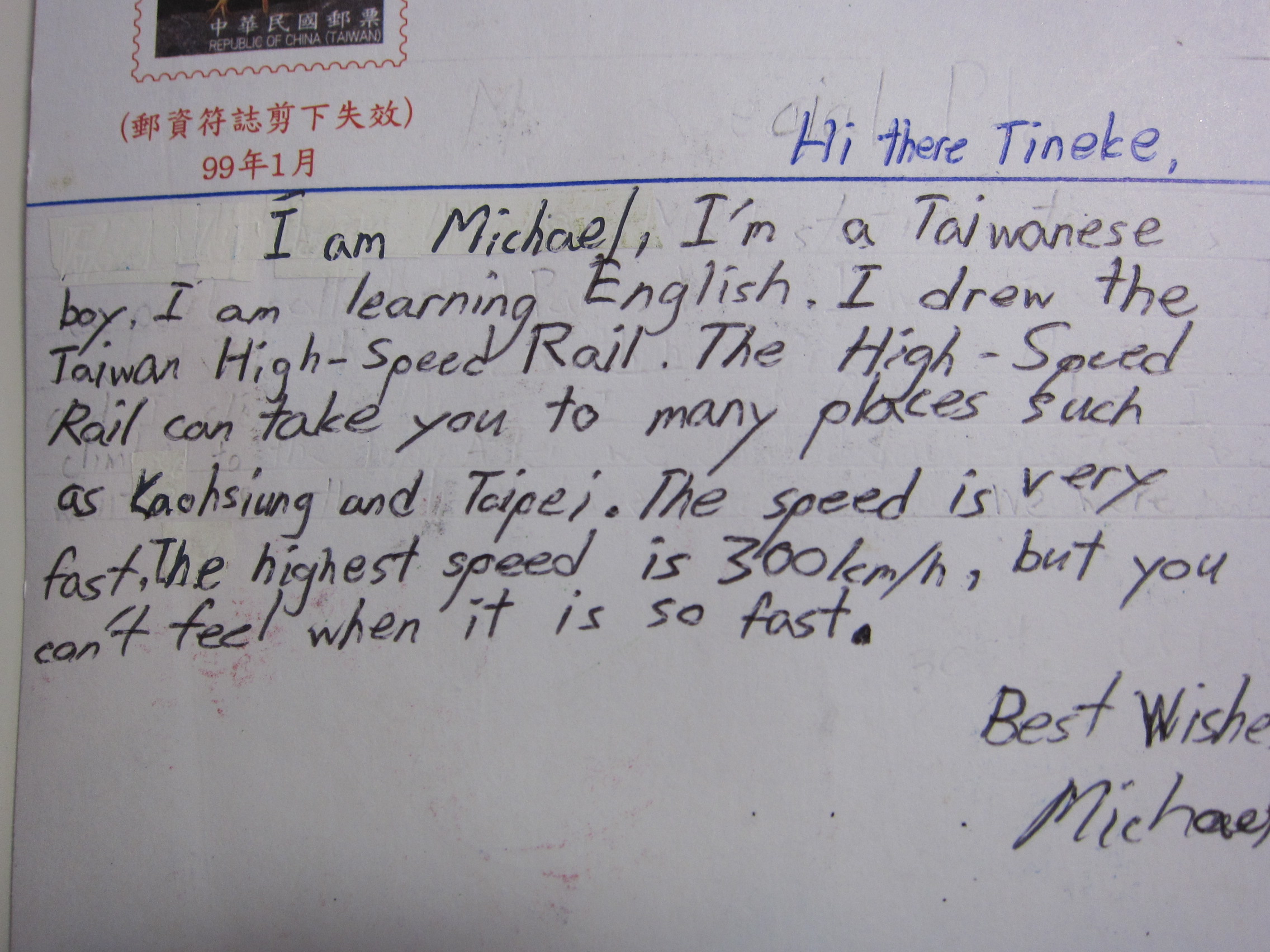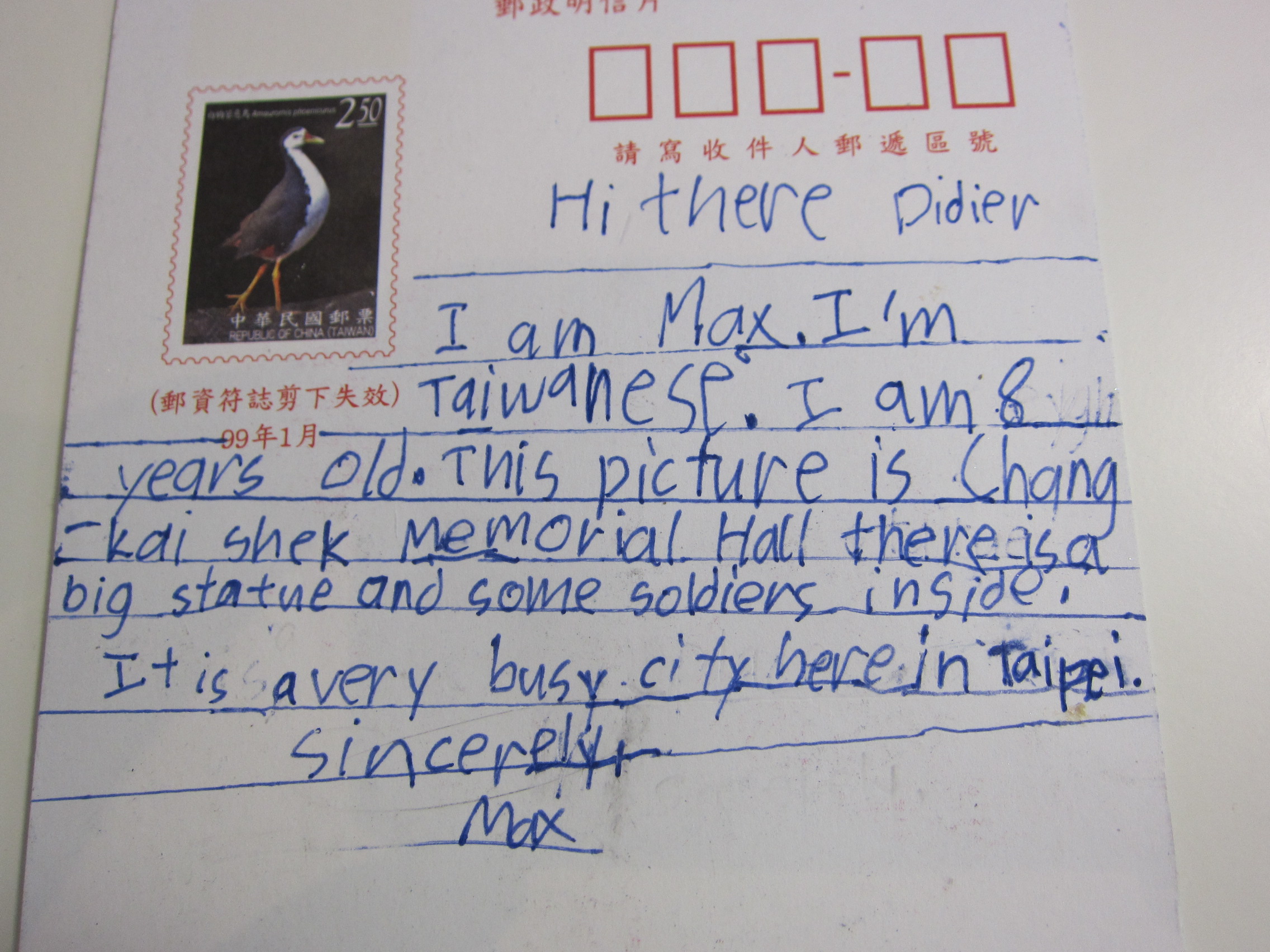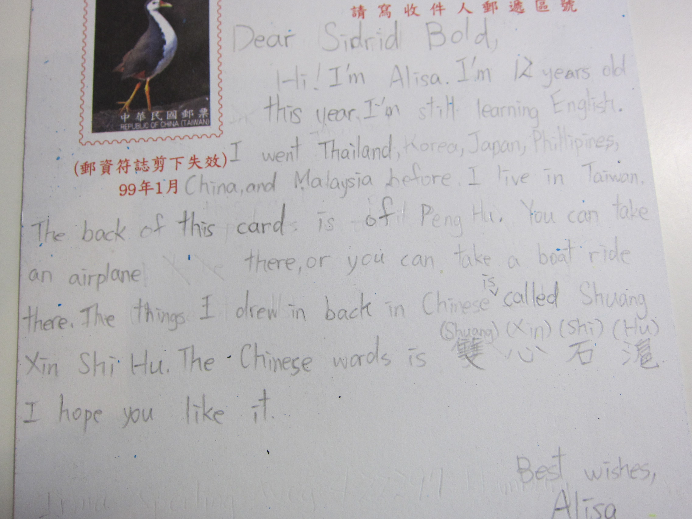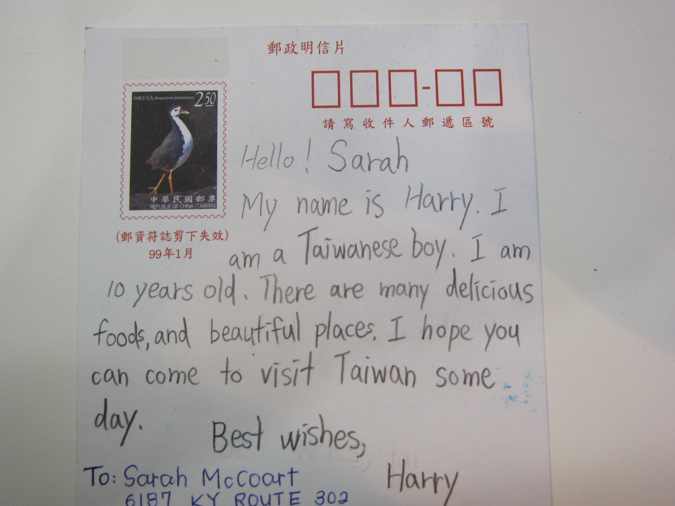 Would You Like To Be My Pen Pal? 明信片筆友 13 七月 201122 七月 2011 ~ PEI 交筆友讓孩子有目的性地愛上了寫作: 向筆友報告自己的生活 介紹台灣風土民情等等, 從國外筆友的回信裡也得到不少意外的知識 原來孩子的寫作課可以延展到無遠弗屆 分享此文: 按一下以分享至 Facebook(在新視窗中開啟) Facebook 按一下即可分享至 X(在新視窗中開啟) X 喜歡 正在載入... 相關 發表者:PEI 檢視 PEI 的所有文章