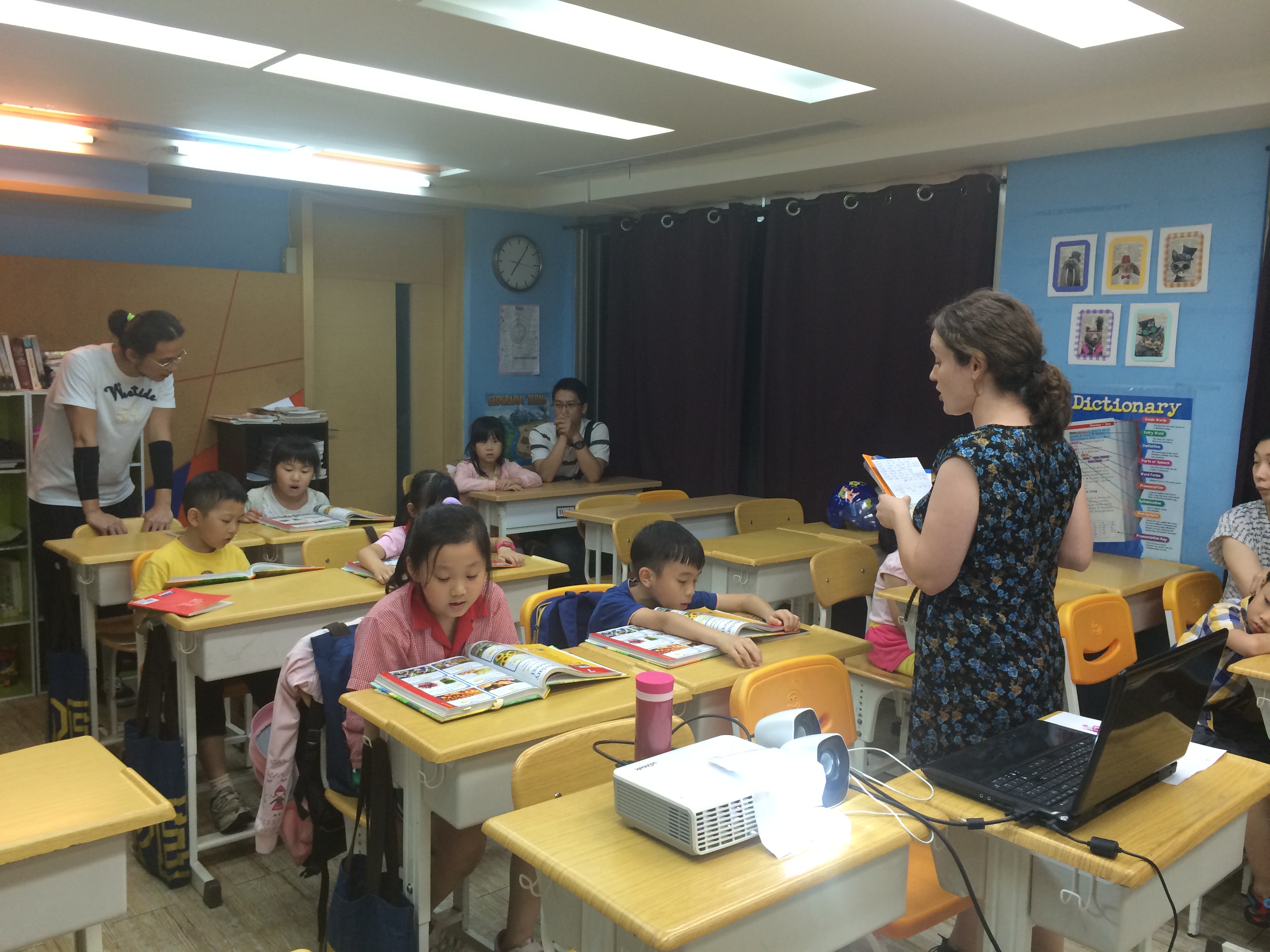 每天踏進PEI的大門,都可以見到PEI的外師們在電腦與講義前埋首的身影,而離上課時間卻還有一小時左右的空檔。到底老師們的一天是如何度過的,又如何能在台上輕鬆自若的掌控全場,帶領學生一起進步呢? PEI的教學風格與大部分的補習班很不同的一點是,許多補習班採用填塞式的教材,也就是所有的學習內容都是「All in one」密密麻麻的分布在課本中。如此,老師們將只須按表操課,而學生在課程後,往往也只停留在記憶層面的吸收。PEI強調的是語言上的全方位理解與學習,因此,我們的老師會特別針對進度與該日教學目標,量身訂作每天的上課內容,甚至是課程中的各個時段的教授細節,都清楚明列在當日教學計畫中。我們希望,藉由大量且專注的備課時間,能確保學生的學習品質。 在老師的教學計畫中,對字彙的認識是重要的基礎。我們的課程設計,平均七到八堂課上完一堂課,同學們在每次上課都會經歷Target Vocabulary的研讀與Spelling Sentences 的抄寫,藉此讓同學在有系統的脈絡下,在前後文中熟記字彙的使用與意義,進而奠定英文聽說讀寫及應用的基礎。 此外,閱讀理解能力也是我們非常注重的技巧。老師在課程中會帶領學生透過練習本,進行多項多元的練習,例如作者的撰寫目的與對文章重點的分析與理解等。而在教學計畫表中,老師也特別針對每篇課文列出許多與文意有關的題目,確保學生對閱讀的理解,這些皆是開放性的問題,並無標準答案。PEI重視的是學生在這樣的學習過程中可以學到什麼,並且鼓勵學生的思考。時間久了,理解力與語文能力的進步將是有目共睹的。