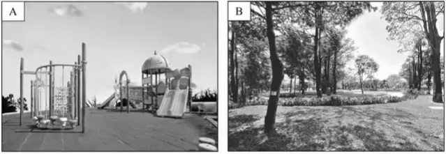There’s a reason why parks are considered to be the “lungs of the city." They provide facilities for the young to play and greenery for everyone to escape from the concrete jungle, allowing us to breathe in some fresh air and experience a change of scenery. The illustration of the park in picture A shows that there’s a plethora of equipment on the playground, enough so that kids of all kinds can definitely find their favorite to enjoy. It primarily serves the community as a gym for the kids. Contrary to what playground equipment can promise, picture B shows what a forest should look like if it is relocated to the city side. It provides a plentiful amount of shade to hide from the broiling sun and lush grassland on which we can have our picnics. This type of park serves as a convenient stop-over for people whose lives are always in the fast lane to get recharged when they get sick of skyscrapers and neon lights.